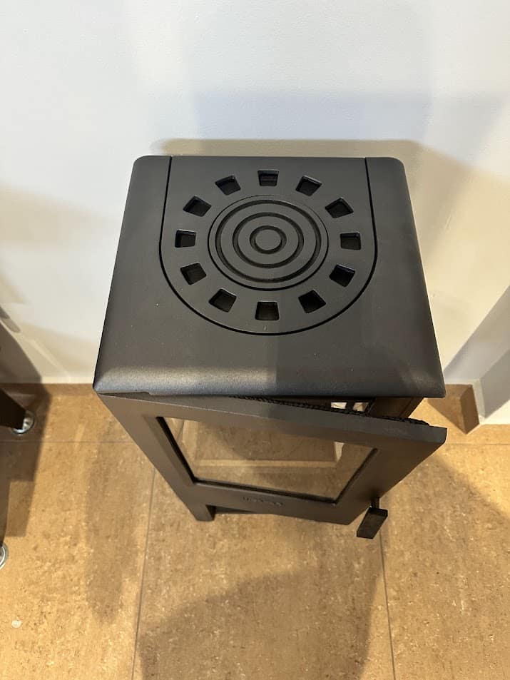 Szwedzki Piec Westbo Nobel z żeliwnym korpusem i płytą grzewczą, palenisko wyłożone wermikulitem. Ruchomy ruszt pozwala oczyścić palenisko z nadmiaru popiołu i zsypać go do szuflady umieszczonej pod paleniskiem.